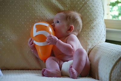 lots of smiles, drool, exersaucer, rolling over, ticklish, wiggle worm, rice cereal, loves his dad, fun baths, laughing, 5 & 1/2 months, cousins & one on the way, thumbs & hands in mouth 99% of the time, snuggling, toys, touching your face, patting things, 15 lbs, baseball & basketball fan, going to the pool, sleeping in, laundry helper, funny growling sound, fun new baby friends, Walker & Leroy's buddy, scoots in a circle on his tummy, big blue bear, sweetest & cutest thing to me ever